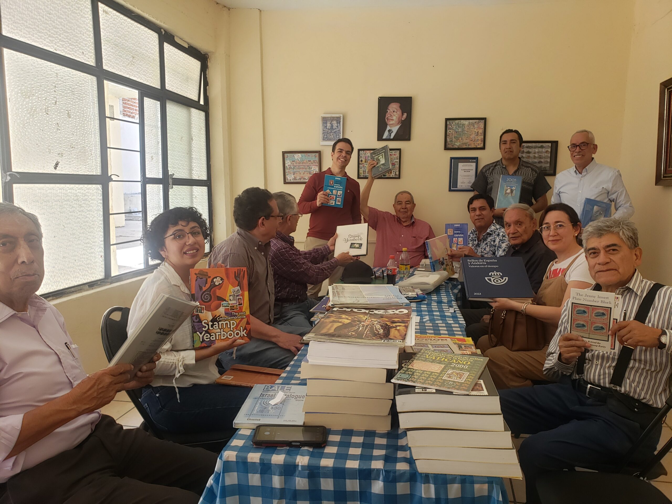 Derivado de la exposición de timbres postales navideños se acercó con uno de nuestros compañeros una ciudadana interesada en donar material filatélico al club.